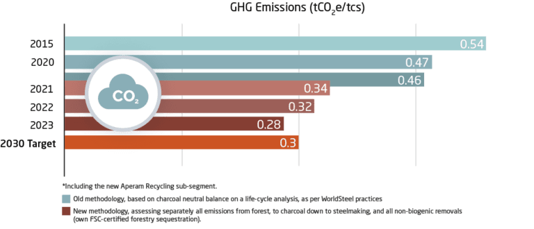 Aperam monitors its Scope 1, 2 and 3 emissions. Scope 1 covers direct emissions from owned or controlled sources. Scope 2 covers indirect emissions from the generation of purchased electricity, steam, heating and cooling consumed by the reporting company. Scope 3 includes all other indirect emissions that occur in a company’s value chain, with the bulk of it being related to extractive raw materials such as Nickel and Chromium in the stainless and alloys sector.